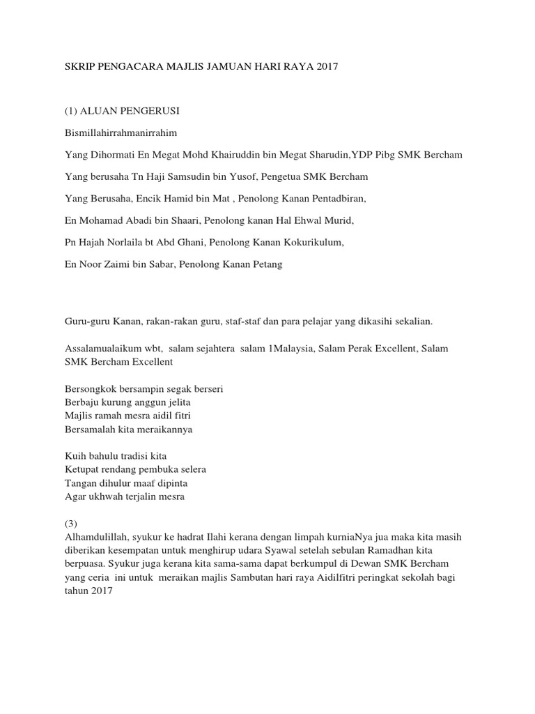 Majlis jamuan hari raya aidilfitri 2016 puspanita kuala muda. Ya allah ya karim, karim, sesungguhnya sesungguhn ya kami berhimpun pada hari yang mulia, bagi menyatakan kesyukuran di atas kurniaan rezekimu yang tidak ternilai. Majlis jamuan aidil fitri venue: Faridah binti omar, penolong kanan pentadbiran, en. Menagihkan makan ringan untuk semua murid.